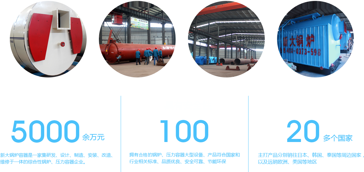 新鄉(xiāng)市新大鍋爐容器有限公司,是一家集研發(fā)、設(shè)計(jì)、制造、安裝、改造、維修于一體的綜合性鍋爐、壓力容器企業(yè)。 公司位居河南省新鄉(xiāng)經(jīng)濟(jì)開(kāi)發(fā)區(qū)鍋爐、壓力容器基地——小冀中聯(lián)路南段。距107國(guó)道、京港澳高速公路10公里,京廣鐵路3公里,京廣高速鐵路12公里,鄭州新鄭國(guó)際機(jī)場(chǎng)70公里,交通十分便利?! 」旧a(chǎn)基地現(xiàn)有面積8萬(wàn)余平方米,生產(chǎn)建筑面積5萬(wàn)余平方米。擁有鍋爐、壓力容器制造大型、高精設(shè)備300......更多>>